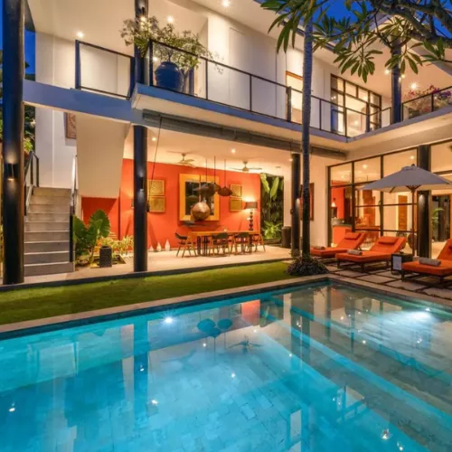 Villa Boa is a beautifully designed three-bedroom villa located within the Canggu Beachside Villas community, blending contemporary comfort with tropical charm. The property features an expansive pool area, open-plan living spaces, and a lush garden setting — ideal for relaxing in privacy. Its location is especially convenient: guests are just minutes’ walk from Batu Belig and Berawa beaches, offering tranquil vibes while still close to chic cafes and low-key beachfront culture. During Nyepi, this villa’s thoughtful layout and peaceful surroundings make it a great choice for experiencing Bali’s unique silence.